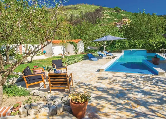 Nice Home In Split With Jacuzzi, Wifi And Outdoor Swimming Pool is situated approximately 25 minutes' walk from City Center one Split in Split and offers accommodation with a fully equipped kitchen. The 4-bedroom villa is fitted with 2 bathrooms with a bath and a shower.